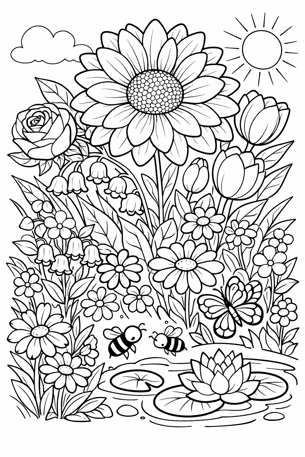 Look for pages with large, simple outlines and generous spaces to color inside. Single flowers, heart shapes, smiling suns. Don't worry about recognizable scenes. This age is about grip practice and color joy, not composition.