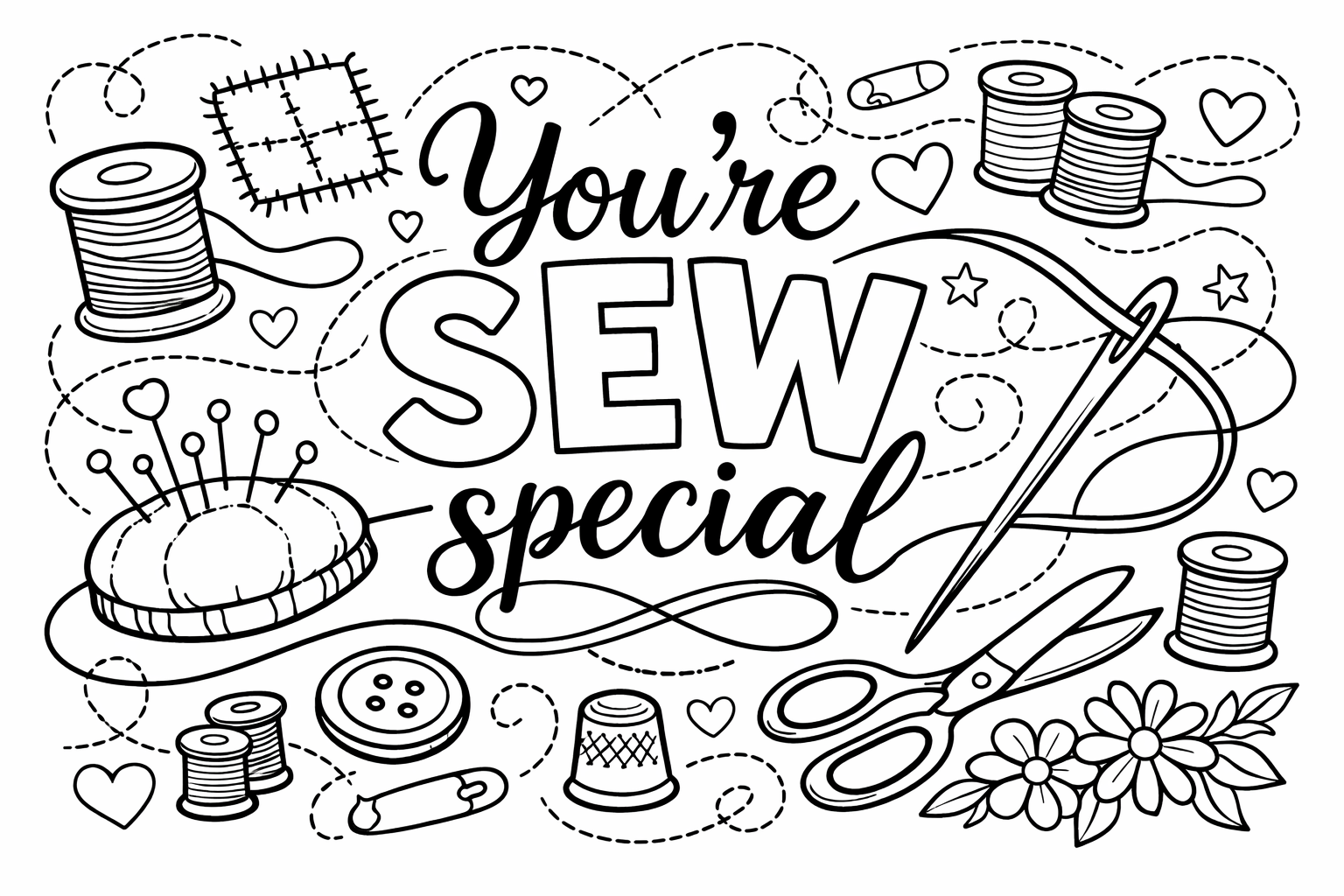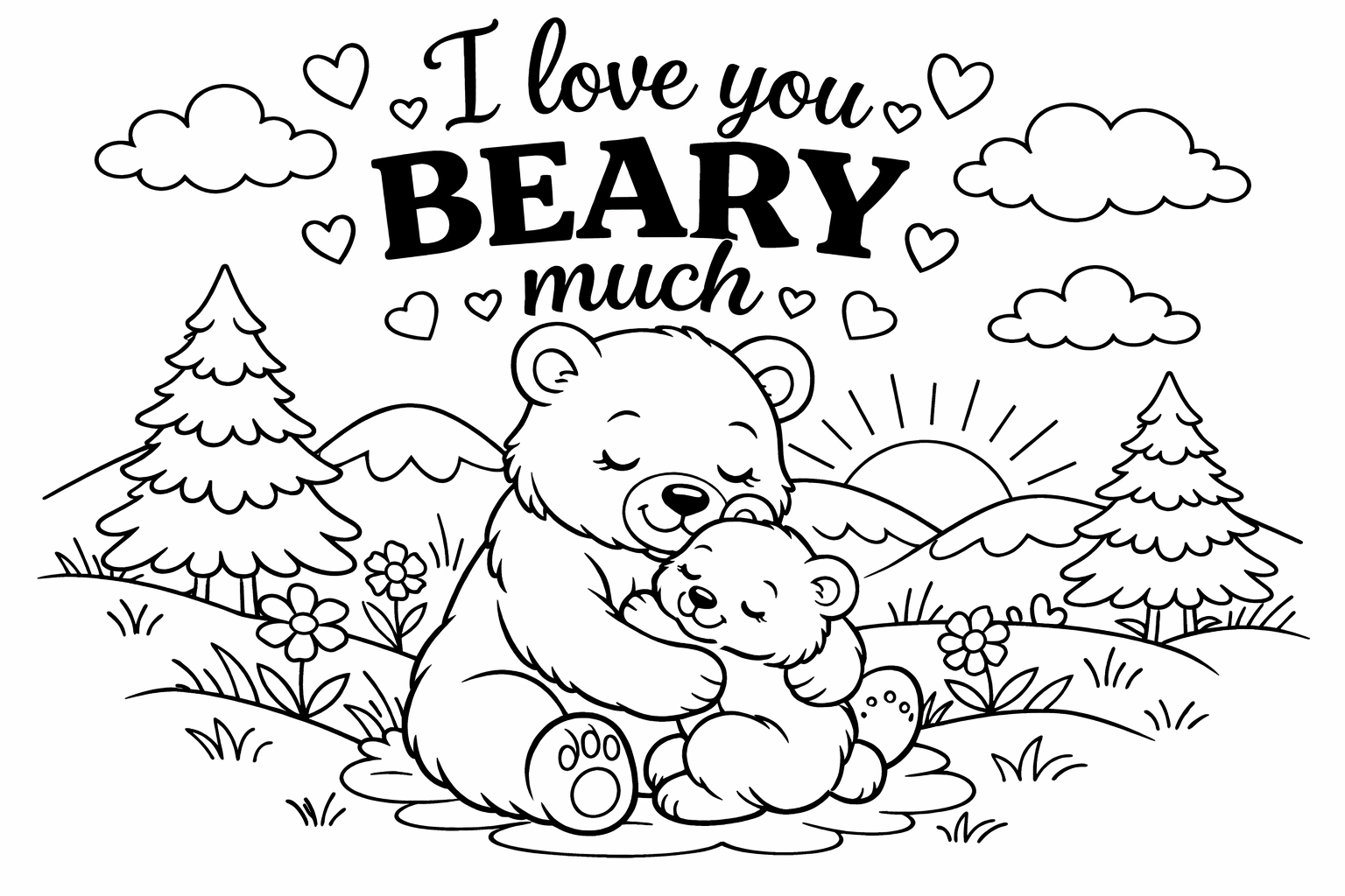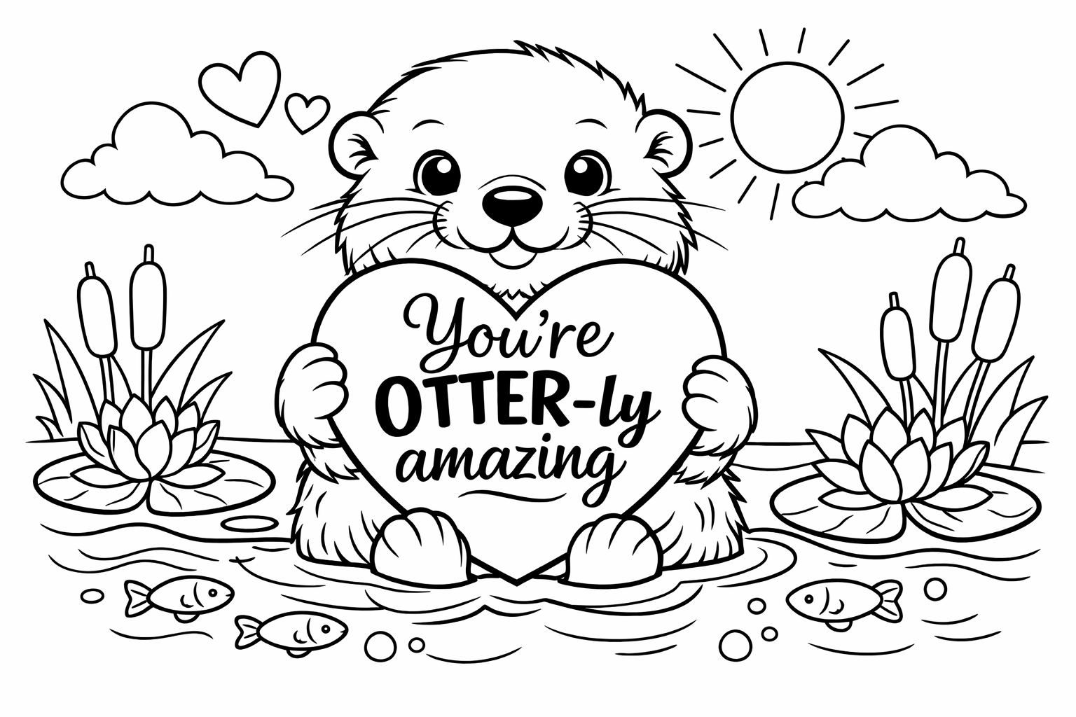 Lettering-style pages where the message itself is the illustration. Kids color the letters, the background, and any surrounding decoration. These become instant card fronts.