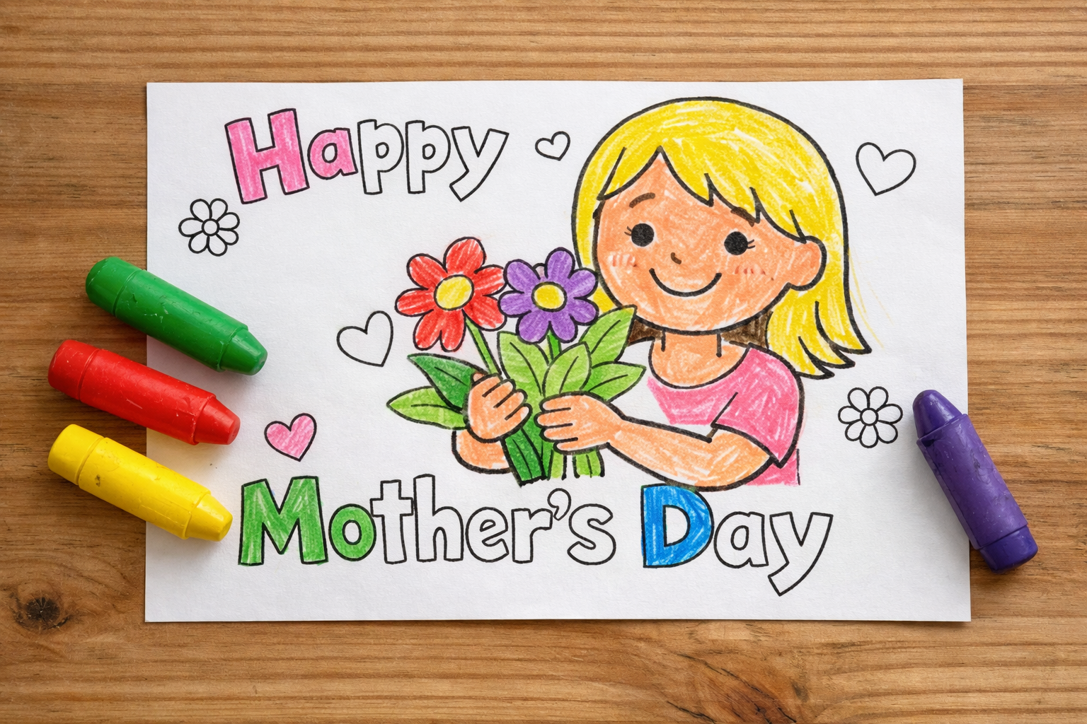 Handing mom a card you colored yourself hits different than anything from a gift shop. The paper is a little crinkled, the lines go just outside the shapes, and she keeps it on the fridge for three months anyway. That's the magic.